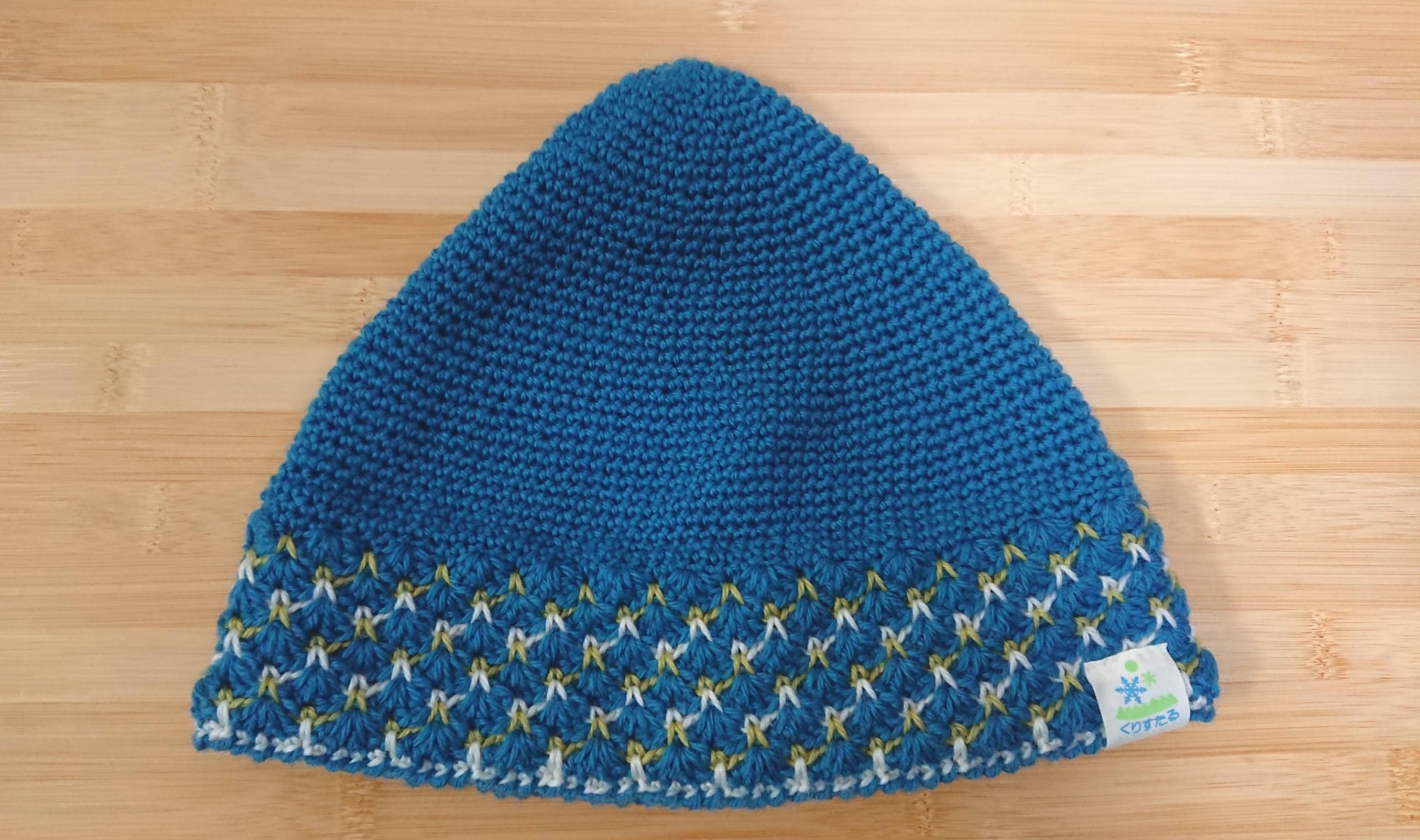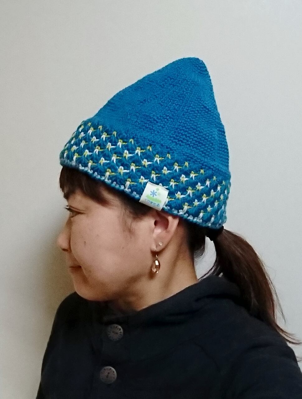 普通にかぶるととんがり帽子、ちょっと寒いときは深めにぎゅっとかぶればあたたかいですよ!